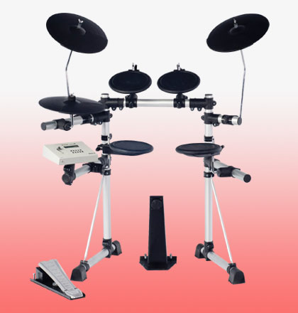 3 Pads mono de 8"(single trigger) e 1 Pad estéreo 8"(dual trigger) com conector P10;1 Pad de Bumbo DP-100 torre, feito em aço carbono com conector P10;