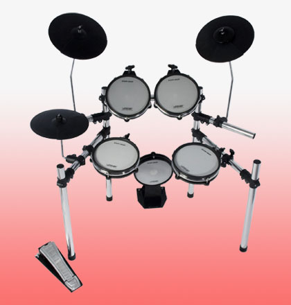 3 Pads de 9" de tambores single trigger (modelo PV-9) com cinco afinações, aro de metal, base do pad injetada em nylon e com peles de tela sintética em nylon, com conexão P10;